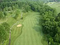 6 lateral_water_hazard area A natural obstacle designed to add difficulty to a golf course.