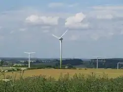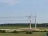 A new kind of power tower in UK, with a special design of T-shape. Two 3 phases circuits are suspended on those supports. As the triangle formed by insulators for each circuits looks like isosceles, we use value here.
