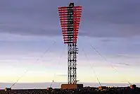 Belyst enslinje som markerar farleden över Erstan i Skärgårdshavet. Här är ljusen tillräckligt starka för att synas också dagtid.