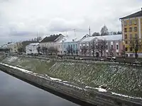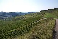 | An artificial steep slope. Lower side to right (arrows side). |