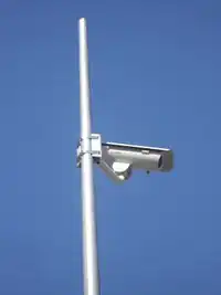 A surveillance camera or other types of surveillance equipment. These may be publicly or privately operated, and may be monitoring a public or private space.