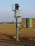 Clear-of-points marker/Track contact marker | A signal that indicates up to which limit a track may be occupied to avoid collisions and malfunctions of signals and switches. |