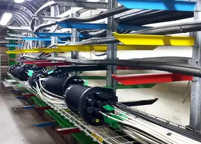 Underground cables can be accessed from manholes covering rooms linked by ducts. Cables are rolled out in the ducts to increase network capacity or replace a damaged section.