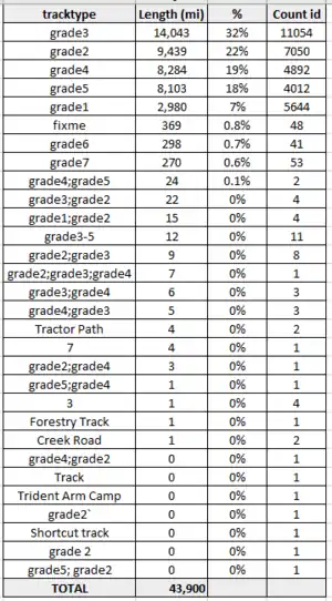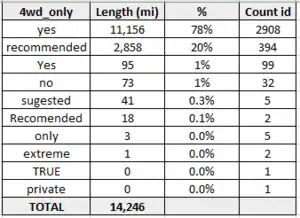 Where we have government data, we compared it with what's in OSM under "4wd_only" tag. We made statistics and maps.