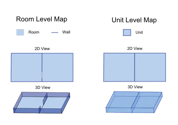 The difference between a unit level map and a room level map may make sense, but it is at risk of causing confusion for a typical map maker who might not spend a lot of time thinking about this distinction. This should be addressed in deciding what the standard should be.