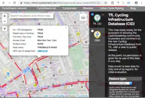 To conflate the TfL CID database with OSM in order to add additional cycling related assets and give richer attributes for existing cycling assets within the Greater London area. The conflation process will make the detailed CID dataset more readily available to the OSM and cycling communities with the hope that it will benefit new and future cycle based users of Open Street Map, for example through improvements to cycle routing.