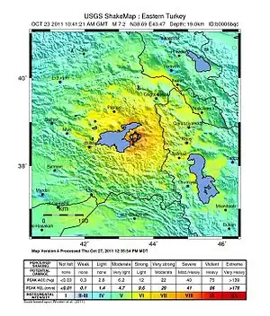 The Turkey Earthquake 2011 struck eastern Turkey near the city of Van (map). Wikipedia:2011 Van earthquake has details and news links.