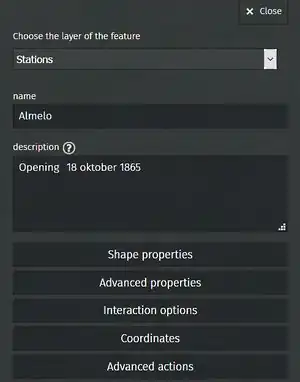 - Shape properties: See Customize the icon of a marker.