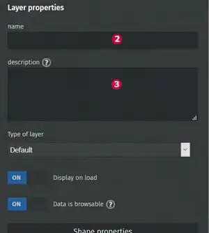 - Step 4: A layer without a name will be referenced in the system with name undefined. The name can be modified later. Recommendation: give a layer immediately a name (see 2) and also a description see (3). The description may contain text formatting.