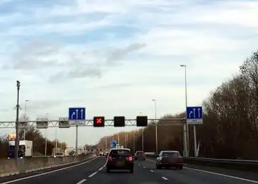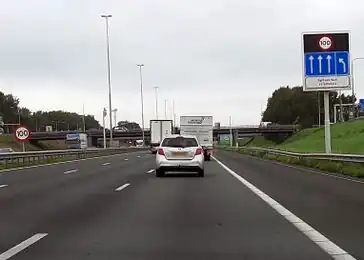 There is a peak-hour lane for the off-ramp on the right, replacing the hard shoulder.