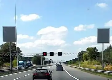 This road segment has a hard shoulder on the right next to the peak-hour lane on the right.