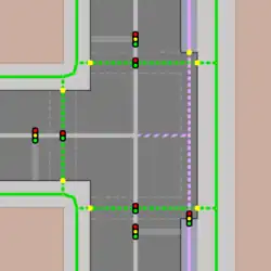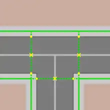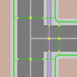 T-Kreuzung mit separat gemappten Gehwegen![]() Die |
