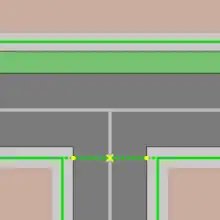 T-Kreuzung mit nur teilweise separat gemappten Gehwegen![]() Haben nicht alle Straßen separat gemappte Gehwege, ist eine |