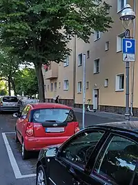 Ausgewiesene Stellplätze für Menschen mit Behinderungen. Sind häufig zeitlich beschränkt, sodass sie nur zu bestimmten Uhrzeiten Menschen mit Behinderungen vorbehalten sind. Optional kann auch |