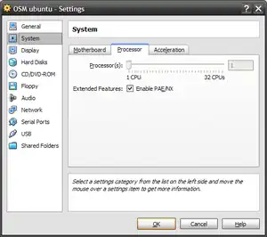 - enable PAE/NX checkbox (in System/Processor, see picture beside)