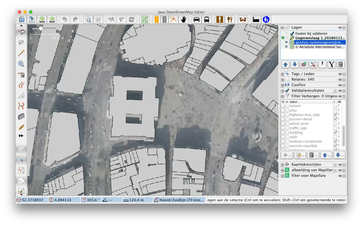 JOSM is een echte power-editor, maar kent wel een steile leercurve. Bovendien heeft JOSM de mogelijkheid om je gemaakte edits te valideren, waardoor voorkomen wordt dat je onverwachte dingen op de kaart zet of verwijdert!