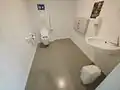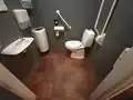 A wheelchair accessible toilet is a toilet that should be accessible to persons using a wheelchair or having other motoric problems. It typically has various extra aids, such as grab rails to transfer from the wheelchair to the toilet, a wide door, plenty of space to navigate, a faucet that is easier to use, motion-controlled light, ...