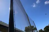 A fence made of hardened glass panels, usually supported at intervals by metal posts. Often used for swimming pool or verandah fencing, when you want to be able to easily see through the fence. |