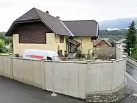 A fence made of concrete blocks or concrete elements with special geometry. It can be opaque or hollow.