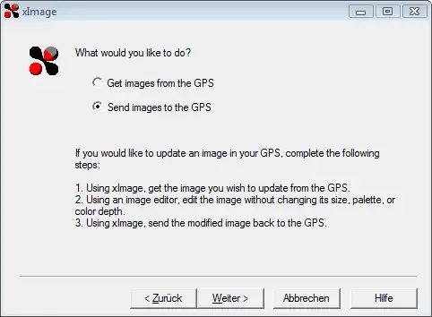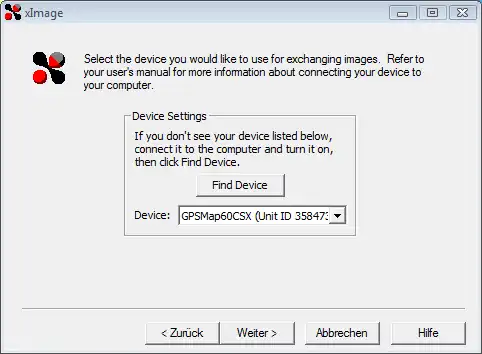 Für die Überspielung der Bilder in den Empfänger ist das Tool xImage erforderlich das Garmin auf einer seiner Webseiten zur Verfügung stellt.