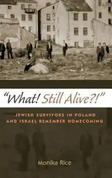 - ↑ Brenner, Rachel Feldhay (3 May 2019). "'What! Still Alive?!' Jewish Survivors in Poland and Israel Remember Homecoming. By Monika Rice. Syracuse: Modern Jewish History. Syracuse University Press, 2017. xii, 254 pp. Appendix. Notes. Bibliography. Index. $60.00, hard bound. $29.95, paper". Slavic Review. 78 (1): 236–237. doi:10.1017/slr.2019.38. S2CID 166548422.