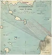 Construction of the fortress began in 1899 and was completed in modern condition in 1907. In 1904 the name Älvsborg Fortress was given to the new coastal fortress at the mouth of the Göta River, whose strongest fortification, Oscar II's Fort, started construction in 1899 on Västerberget. The fortress, whose task, like previous fortresses, was to secure both Gothenburg and the Port of Gothenburg and the Swedish Navy's rallying point there against attacks from the sea, was in 1907 equipped with new modern artillery guns. The main body of the fortress consisted of two 24 cm guns model of 1904 mounted on disappearing carriages and some 15 cm gun turrets and other light guns.[2] The fort, which is immersed in the basement, encompasses space for 300 people and consists of several hundred meters of walkways with offices, lodgings, messes and stores.[3] The fort's armament was completed in 1907. In addition to naval mines around the flanks, there was also a light battery, the Götiska batteriet ("Geatish Battery") donated by the Geatish Society.[2]