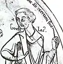 The East Anglian pedigree in the Anglian collection brings the descent down to Ælfwald, indicating that it was compiled during his reign, possibly by around 726. Showing Ælfwald as son of Ealdwulf, the pedigree continues back through Ethelric, Eni, Tytla, Wuffa, Wehha, Wilhelm, Hryp, Hrothmund, Trygil, Tyttman and Caser (Caesar) to Woden.[1] The Historia Brittonum, which was probably compiled in the early 9th century, also has a version (the de ortu regum Estanglorum) in descending order, showing: "Woden genuit ('begat') Casser, who begat Titinon, who begat Trigil, who begat Rodmunt, who begat Rippan, who begat Guillem Guechan. He first ruled in Britain over the race of East Angles. Guecha begat Guffa, who begat Tydil, who begat Ecni, who begat Edric, who begat Aldul, who begat Elric".[2] It is not certain whether the last name, Elric, is a mistake for Ælfwald or is referring to a different individual.[3]