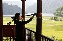 The đàn tính, or tính tẩu (gourd lute), is a stringed musical instrument from tianqin (Chinese: 天琴; pinyin: Tiān qín of Zhuang people in China, imported to Vietnam by the Tày people of Lạng Sơn Province in Vietnam.[1] Although "tính tẩu" originated as a Tày word, both names are used in Vietnamese.[2] The instrument has from two to four strings in from two to four courses. The strings are made of silk, nylon or fishing wire.[3] It is used by shamans in séances in the hope that it will be animated by spirits.[1]