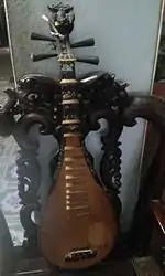 The đàn tỳ bà (Vietnamese: [ɗàːn tì ɓàː], Chữ Nôm: 彈琵琶) is a Vietnamese traditional plucked string instrument derived form the Chinese pipa,[1] That first gained popularity in China before spreading throughout East Asia, eventually reaching Vietnam sometime during the Trần dynasty.