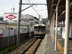 Ōmachi Station (大町駅, Ōmachi-eki) is a station operated by the West Japan Railway Company (JR West) and Hiroshima Rapid Transit. It is located in Ōmachi-higashi, Asaminami-ku, Hiroshima, Hiroshima Prefecture, Japan. The Kabe Line and the Astram Line stop at this station, though they are situated in separate station buildings. An overpass connects the two buildings together.