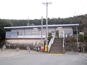 Ōmi Station was established on September 23, 1900, as a station on the now-defunct Toyokawa Railway (豊川鉄道, Toyokawa Tetsudō). The station was renamed Nagashino Station (長篠駅, Nagashino-eki) on March 15, 1903. On February 1, 1923, the Hōraiji Railway connected to this station. On August 1, 1943, the Hōraiji Railway and the Toyokawa Railway were nationalized along with some other local lines to form the Japanese Government Railways (JGR) Iida Line, and the station was renamed to its present name.[1] The present station building was completed in August 1969. Scheduled freight operations were discontinued in 1984. The station has been unattended since April 1985. Along with its division and privatization of JNR on April 1, 1987, the station came under the control and operation of the Central Japan Railway Company.