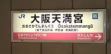 Station numbering was introduced in March 2018 with Ōsakatemmangū being assigned station number JR-H43.[2][3]
