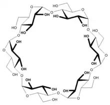 - ↑ Thomas Wimmer (2012). "Cyclodextrins". Ullmann's Encyclopedia of Industrial Chemistry. Wiley-VCH. doi:10.1002/14356007.e08_e02. ISBN 978-3527306732.