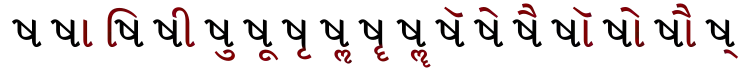| ष | षा | षि | षी | षु | षू | षृ | षॄ | षॢ | षॣ | षे | षै | षो | षौ | ष् |
