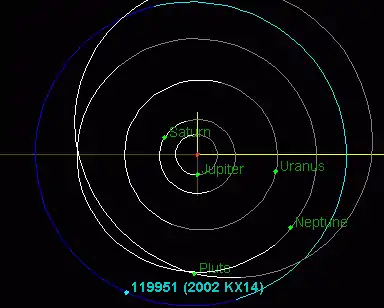 (119951) 2002 KX14, also written as 2002 KX14, is a medium-sized trans-Neptunian object (TNO) residing within the Kuiper belt. It was discovered on 17 May 2002 by Michael E. Brown and Chad Trujillo.[1]