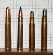 The .35 Whelen is a powerful medium-bore rifle cartridge that does not require a magnum action or a magnum bolt-face. The parent of this cartridge is the .30-06 Springfield, which is necked-up to accept a bullet diameter of .358 in (9.1 mm). This cartridge is more powerful than its parent, especially in killing power on large game. However, with much wider availability, and the higher BC (ballistic coefficient) .30 caliber bullets of today, the power gap between the two cartridges has been decreased.