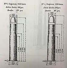 The .500/450 No. 1 Black Powder Express was a rimmed, bottlenecked cartridge designed for use with black powder. The cartridge was originally designed as a deer stalking round with a 260 gr (17 g) bullet, although later a 530 gr (34 g) loading was produced for target shooting.[1][2]