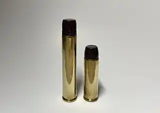 ![]() Comparison of the .500 Bushwhacker (L) to the .500 S&W cartridge (R) | ||||||||||||||||||||||||