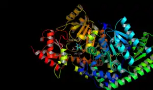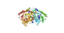 - ↑ Capitani G, Hohenester E, Feng L, Storici P, Kirsch JF, Jansonius JN (December 1999). "Structure of 1-aminocyclopropane-1-carboxylate synthase, a key enzyme in the biosynthesis of the plant hormone ethylene". J. Mol. Biol. 294 (3): 745–56. doi:10.1006/jmbi.1999.3255. PMID 10610793.