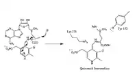 Like other PLP dependent enzymes, it catalyzes the reaction through a quinonoid zwitterion intermediate and uses cofactor pyridoxal phosphate (PLP, the active form of vitamin B6) for stabilization.[1][2][3]