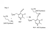 - ↑ Capitani G, McCarthy DL, Gut H, Grütter MG, Kirsch JF (December 2002). "Apple 1-aminocyclopropane-1-carboxylate synthase in complex with the inhibitor L-aminoethoxyvinylglycine. Evidence for a ketimine intermediate". J. Biol. Chem. 277 (51): 49735–42. doi:10.1074/jbc.M208427200. PMID 12228256. S2CID 1019316.