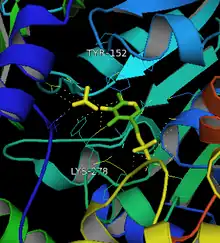 - ↑ Li JF, Qu LH, Li N (August 2005). "Tyr152 plays a central role in the catalysis of 1-aminocyclopropane-1-carboxylate synthase". J. Exp. Bot. 56 (418): 2203–10. doi:10.1093/jxb/eri220. PMID 15983009.