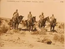 Under the command of COL Herbert Jermain Slocum, four Troops and a Machine-Gun Troop of the 13th Cavalry were posted at "Cavalry Camp" in Columbus, New Mexico when raiders under Mexican Revolutionary Pancho Villa attacked across the border in the dead of night on 9 March 1916.[3] Most of the garrison was asleep when the raiders entered Columbus from the west and southeast shouting "¡Viva Villa! ¡Viva México!" and other phrases. The Cavalrymen awoke to an army of 600 Villistas burning the city and looting the homes. Despite being taken by surprise, the Troopers quickly recovered. Even the cooks, already up and working on breakfast for the Troopers, fought back, throwing boiling water at the attackers. Soon after the attack began, 2LT John P. Lucas, commanding the 13th Cavalry's Machine-Gun Troop, made his way barefooted from his quarters to the camp's barracks. He organized a hasty defense around the camp's guard tent, where his machine-guns were kept under lock, with two men and a Hotchkiss M1909 machine-gun. He was soon joined by the remainder of his unit and 30 Troopers armed with M1903 Springfield rifles led by 2LT Horace Stringfellow Jr. The Troop's four machine-guns fired more than 5,000 rounds apiece during the fight, their targets illuminated by fires of burning buildings.[3]