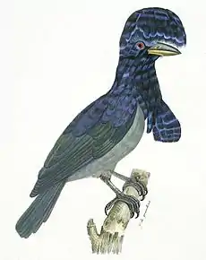 The Amazonian umbrellabird Cephalopterus ornatus Plate from Louis Pierre Vieillot La Galerie des oiseaux