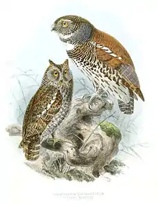 The chestnut-backed owlet was described on 1846 by Edward Blyth in his Catalogue of the birds in the museum [of the] Asiatic Society