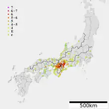 1854 Iga–Ueno earthquake intensity[1]