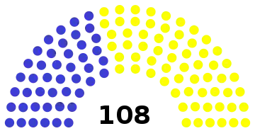 54 of the 108 seats in the Chamber of Representatives 55 seats needed for a majority | ||||||||||||||||||||||||||||