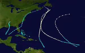 The 1872 Atlantic hurricane season was quiet, lasting from mid-summer through mid-autumn. There were five tropical cyclones, of which four attained hurricane status. However, in the absence of modern satellite and other remote-sensing technologies, only storms that affected populated land areas or encountered ships at sea were recorded, so the actual total could be higher. An undercount bias of zero to six tropical cyclones per year between 1851 and 1885 and zero to four per year between 1886 and 1910 has been estimated.[1] Of the known 1872 cyclones, significant changes were made to the tracks of Hurricane Two and Hurricane Four in 1995 by Jose Fernandez-Partagas and Henry Diaz, who also proposed smaller changes to the known track of Hurricane Three.[2] Further analysis, in 2003, revised the track of Hurricane Five.[3]