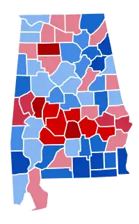 This was the last time that Alabama voted for a Republican until Barry Goldwater won it in the 1964 presidential election. As of 2021, this is also the last time that a Republican won a majority of the vote in heavily black Macon County, home of Tuskegee Institute, which would become one of the most strongly Democratic counties in the nation in the late 20th and 21st centuries.