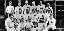 England: SHM Login (Royal Naval College), Alec Pearson (Blackheath), CR Gunner (Marlborough Nomads), AT Michell (Oxford University), CWH Clark (Liverpool), WE Collins (St George's Hospital), J V Brewer (Gipsies), CC Bryden (Clapham Rovers), Andrew Bulteel (Manchester), James Bush (Clifton), HJ Graham (Wimbledon Hornets), JDG Graham (Wimbledon Hornets), W Greg (Manchester), WHH Hutchinson (Hull), Edward Kewley (Liverpool), Francis Luscombe (Gipsies) capt., EE Marriott (Manchester), Murray Marshall (Blackheath), Edward Beadon Turner (St George's Hospital), CL Verelst (Liverpool)